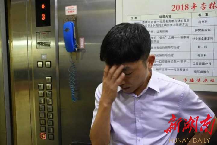 16:03 原定下午2点下乡的计划,因为急诊手术耽搁了。脱下手术服后,李巍急匆匆出发。一整天的手术下来,李巍已经十分辛苦,面露疲惫。在电梯里,李巍扶着额头小憩了一会儿,养养精神。湖南日报·新湖南客户端综合报道 浏阳日报 罗娜 赖文杰 汪丹 原创