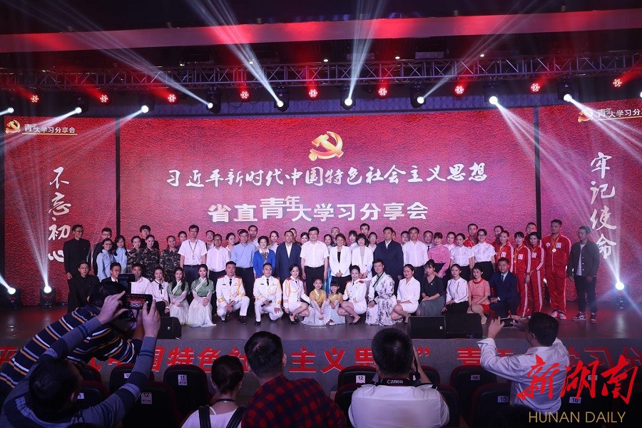 分享会上,青年代表们结合自身的学习和工作经历,采用朗读、演说、音诗画等方式分享学习体会。省委宣传部的郭佳和刘骄,带我们走进500多年的历史画卷,聊聊社会主义有点“潮”;省直党校的王焱,讲述了应时代而生的新思想到底新在哪里;省农委的邓元庆和张盈,分享了在穷山沟里放飞青春梦想,勇做新时代“知青”的真实故事;省注册会计师协会的吴其江、唐萱萱等,通过赏析电影《无问西东》,当面对人生的选重大择,应无问西东、只问初心;省委办公厅的周祖武,分享了机关青年党员如何寻初心、践初心的体会;省财政厅的石凌凡和张宇蕊,用经济学理论分析习近平新时代中国特色社会主义经济思想的科学逻辑;长沙海关的王炜鉴和刘凌云,分享了对全面开放新格局和湖南开放崛起正当时的认识;省教育厅的吕铭、陈功等,通过诵读《唐诗里的中国》领略优秀中华传统文化之美;省水利厅的胡帅帅,描绘出三湘四水孕育的“自然美”,运用“两山”理论找回蕾切尔的惊奇。省纪委省监委的方可,通过身边小故事,还原了八项规定的神奇伟力。省政府办公厅、中冶长天公司的青年带来了他们的原创诗歌朗诵《致信2050》……多次饱含深情的分享,绽放智慧火花,洋溢着青年们勤于学习、善于思考、勇于担当的青春豪情。