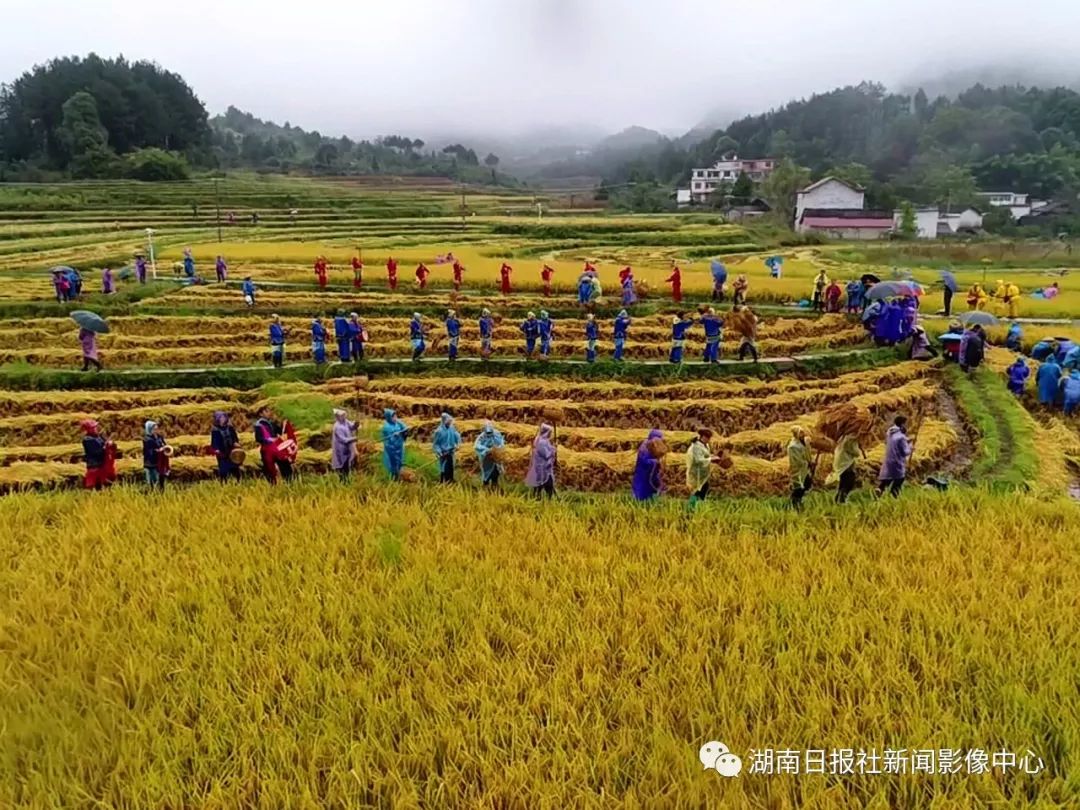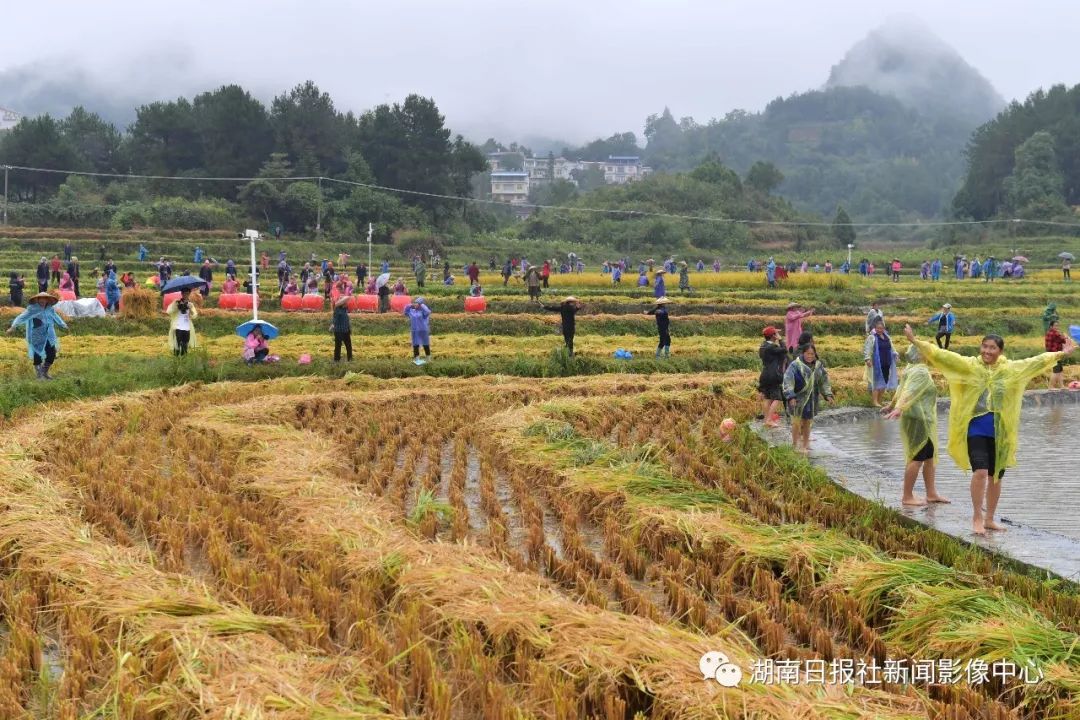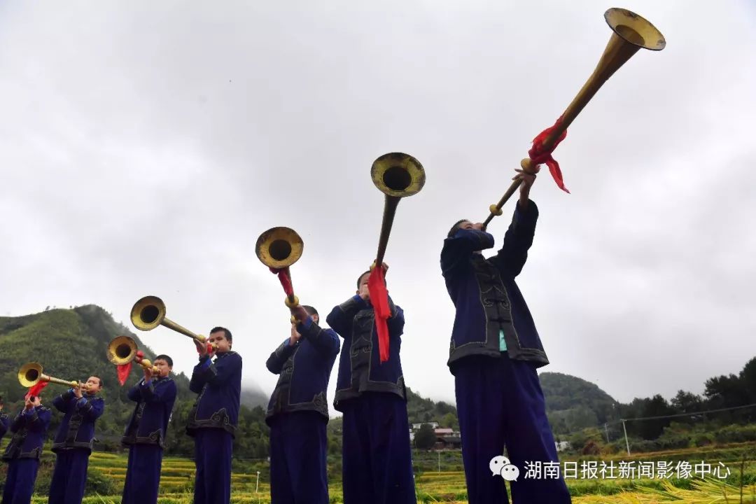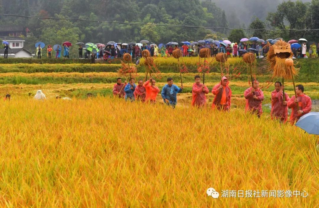 9月23日,农历秋分,正值首个“中国农民丰收节”。永顺县松柏镇福建村,数千名土家儿女欢聚一起,在110余亩稻田里,开展独特的“晒龙谷”民俗活动,欢庆今年的丰收。