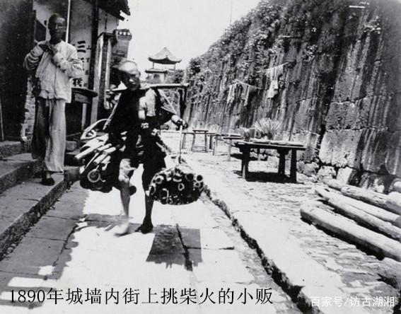 1890年城墙内街上挑柴火的小贩。 [英]传教士班为兰镜头中的长沙百姓真实生活和市井百态1890—1920(于鹏远供图)来源:访古湖湘百家号