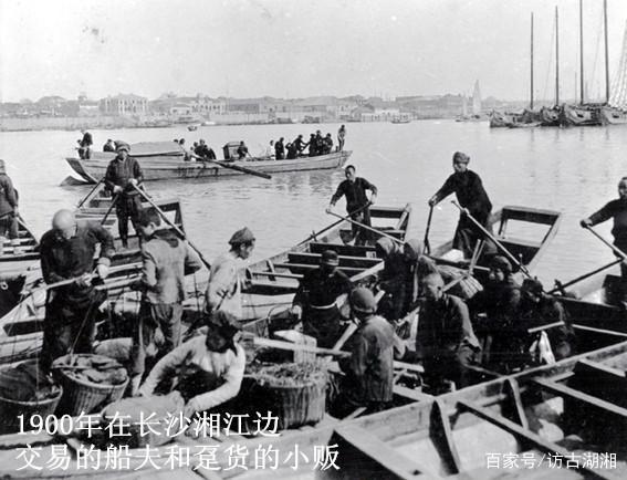 1900年长沙湘江边交易的船夫和趸货的小贩