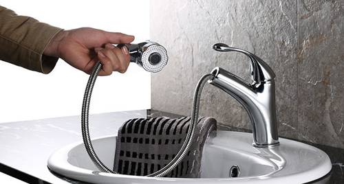 ❹洗手盆那里的龙头,选择那种可以拔出来洗头的型号。男主人洗头、女主人洗刘海都非常方便。
