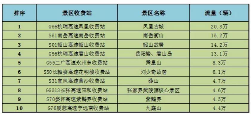 五是省内重点景区高速路段相对平稳。由于节前宣传、诱导有力,公众错时错峰出行和及时分流绕行意识明显增强,国庆假期期间,凤凰古城、韶山、南岳等重要景区路口及周边高速路段未发生交通拥堵,车流量保持相对平稳状态。