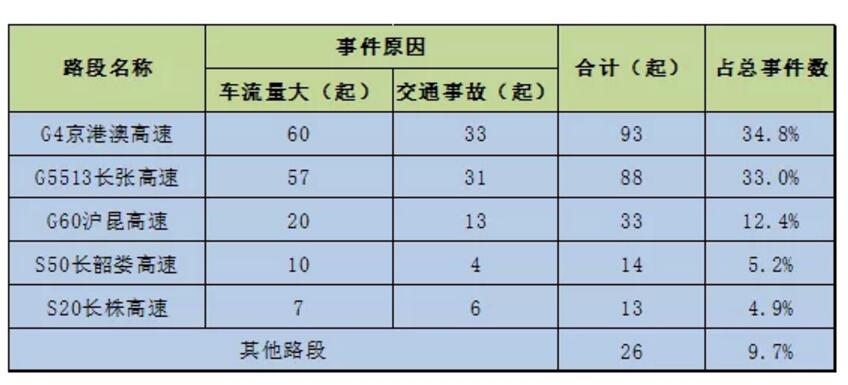 集中体现在省内车流量较大的几个路段,即G5513长张高速长沙段、G60沪昆高速湘潭段、G4京港澳高速长沙段、株洲段,以及环长沙周边高速如S50长韶娄高速长沙段、S20长浏高速长永段等。