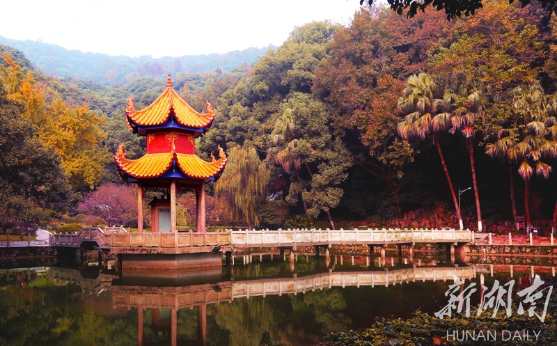 岳王亭位于岳麓山北麓,湖南师范大学校内东北角,建于1936年。三面临池,绿水环绕,飞檐翘角,亭与倒影交辉映。亭中有一块石碑,前面有岳飞画像,后面有碑文。环境清雅,适合约上三五好友聊天。新湖南媒介工作室 高佳雨 王晗 陈妍 张云梦 龙婷婷 陈婷 新湖南客户端记者 胡泽汇