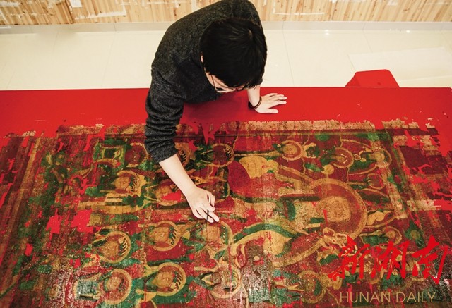 (刘胄在修复清嘉庆年间的纸本水陆)