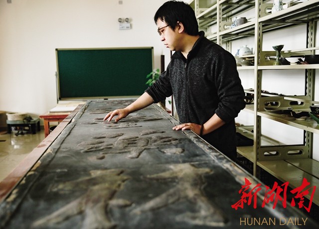 他的正式身份是湖南艺术职业学院文物修复与保护专业的教师。找到他时,他正在教室里穿梭忙碌,不是在这个学生的作品上雕两刀,就是在那位学生做的模型上捏上两把,并且扭头传授几句要领。须知他是该校唯一的一位文保专业实操老师,且在多个考古研究所和博物馆兼职文物修复工作。