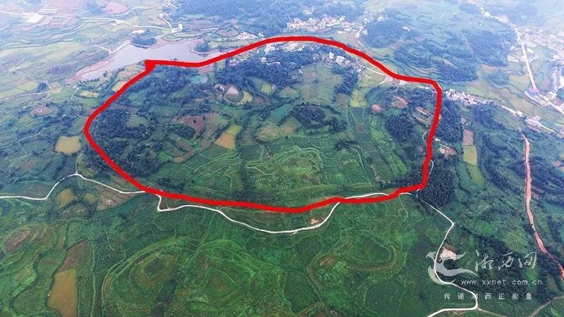 公元二零一八年五月的一天,我来到这里。长空如洗,台地横陈。如果不是考古专家龙京沙先生的引领,阡陌之上,我们断然分辨不出六百多年前曾经有一座古城垣于此立定。宽达十多米的城壕已然成为一处处水洼,城墙业已和野地相融,在初探发掘的剖面提示下,用目光裹起周长二点二公里五边形城池,台地之上的壮阔雄浑灼痛了我的双眸。五十五万平方米的城池过往,八十二亩田畴铺陈,两厢对照,山河袈裟,无情的岁月水墨了往昔的繁庶,这块土地生长过历史的浩荡风云,现在还生长稻谷、柑橘和野草,有些恍惚,但不荒谬。