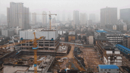 12月28日,上午10时,经历40多个小时,湘江宾馆中楼主体建筑向北平移了35.56米。(来源:红网时刻)