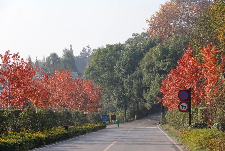 被彩叶装扮得色彩分明的枫香大道,一树一木皆是美景!
