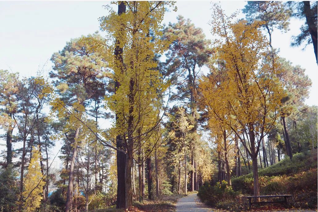 泛黄的银杏林是这个季节大自然带给我们最大的惊喜,它的叶子仿佛镶着金边一般炫彩夺目。虽树龄还未达到百年银杏的壮观,但也有它的独特之美。