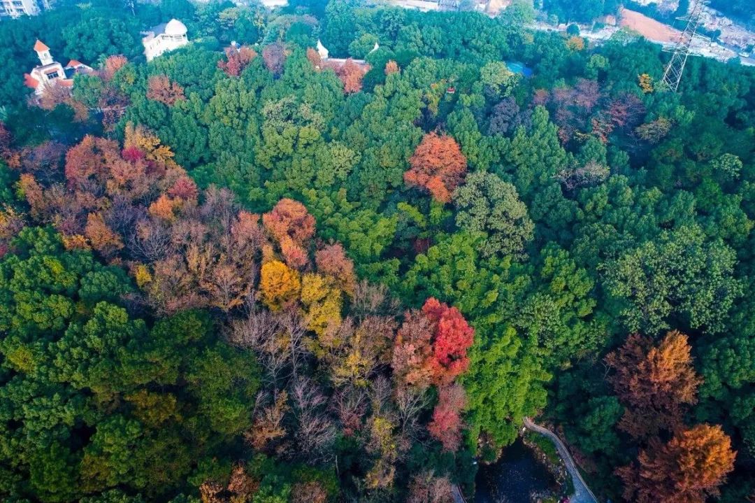 俯瞰整个园区枫香大道已如色彩斑斓的海洋!