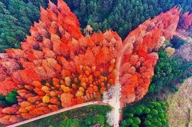 秋冬之交,不是只有白桦林才叫绝色,藏在靖州苗族侗族自治县腹地的排牙山森林公园里逾千亩水杉林此时同样让人称绝,这里水杉红透,层林尽染,色彩斑斓,秀美如画,吸引着众多游客前来观景拍照。