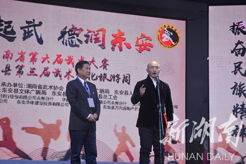 付黎明、贺辉、周益志、蔡富强、张波、陈军等省市县领导出席开幕仪式。本次活动由湖南省体育局主办,湖南省武术协会、永州市文体广电新闻出版局、东安县人民政府承办。