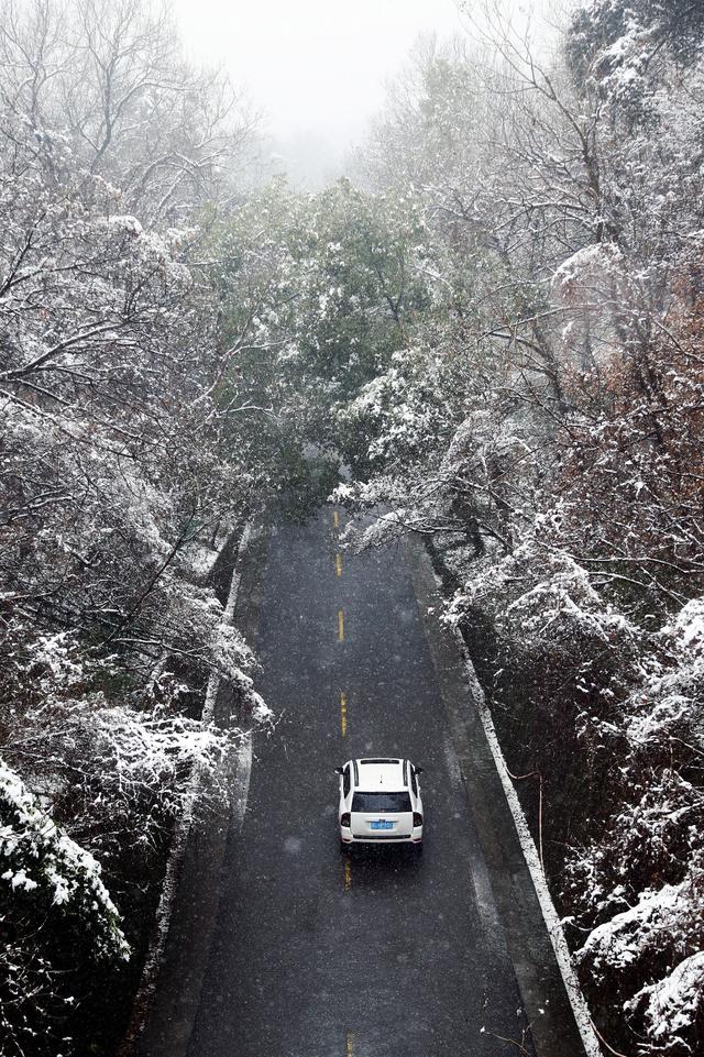 1月9日,一辆汽车行驶在江苏省镇江市南山风景区内道路上。(来源:视觉中国、新华社)