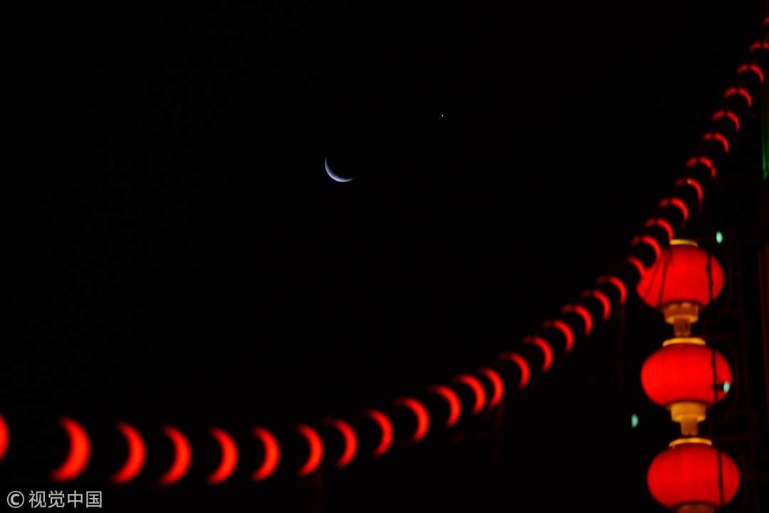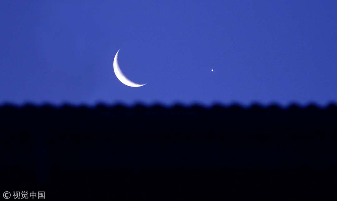 据介绍,2019年“开门红”的有趣天象市金星合月。1月2日凌晨,距离地球最近的大行星金星与弯弯的残月汇聚交辉,十分惹人瞩目。只要天气晴朗,我国各地都可以观赏到。图为1月2日,新疆库尔勒,金星合月天象上演。