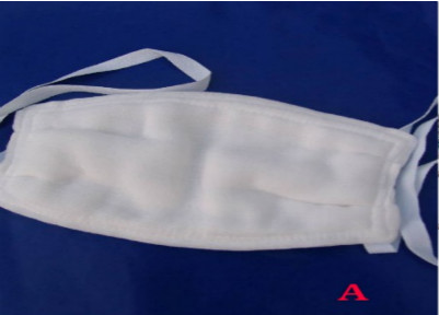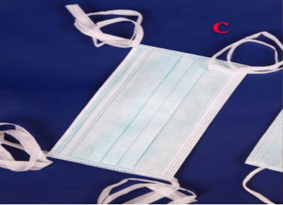 (2)分清口罩内外、上下:医用外科口罩(图B)从外到内为,阻水层、过滤层、吸湿层,所起到的作用也不同,因此要注意里外层。不要带反,更不能两面轮流戴。注意口罩的上下侧,上侧为可定型的鼻条(金属条),能增加口罩与面部的贴合而提高过滤效果。