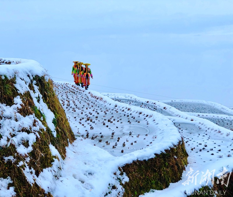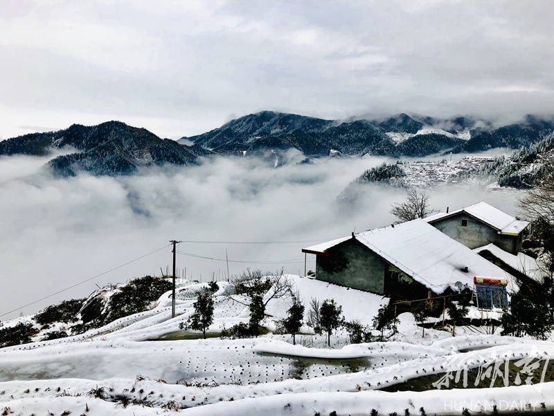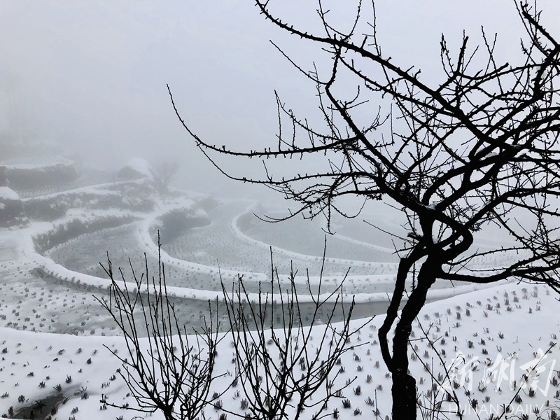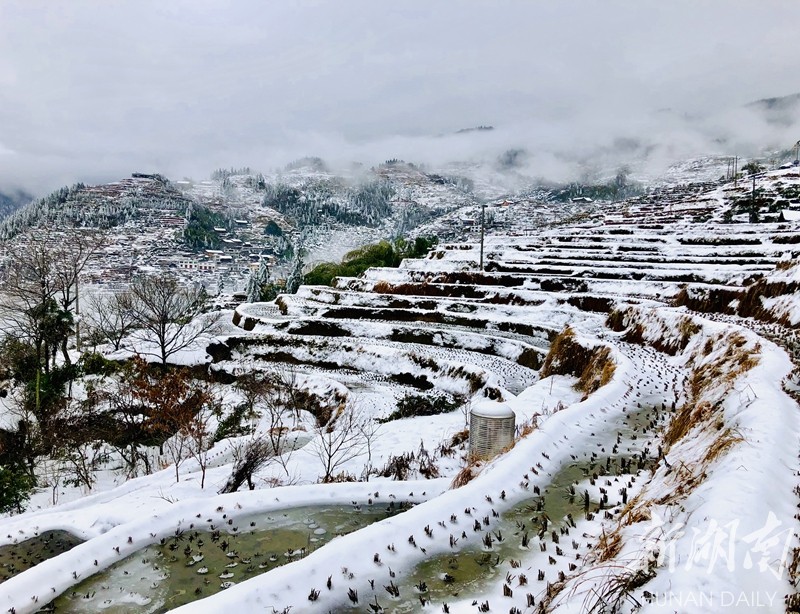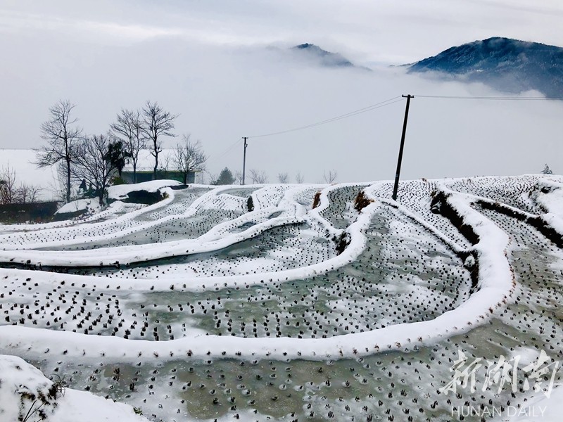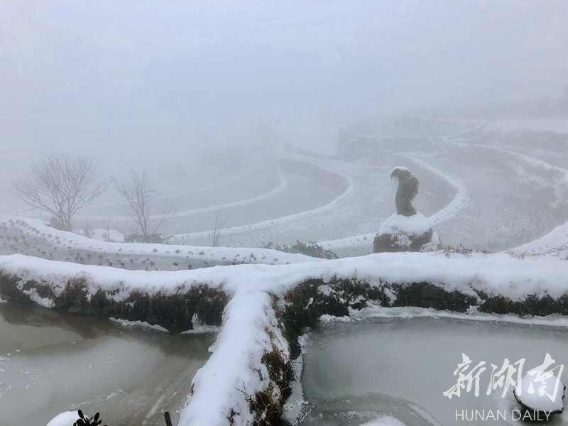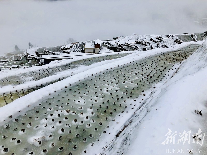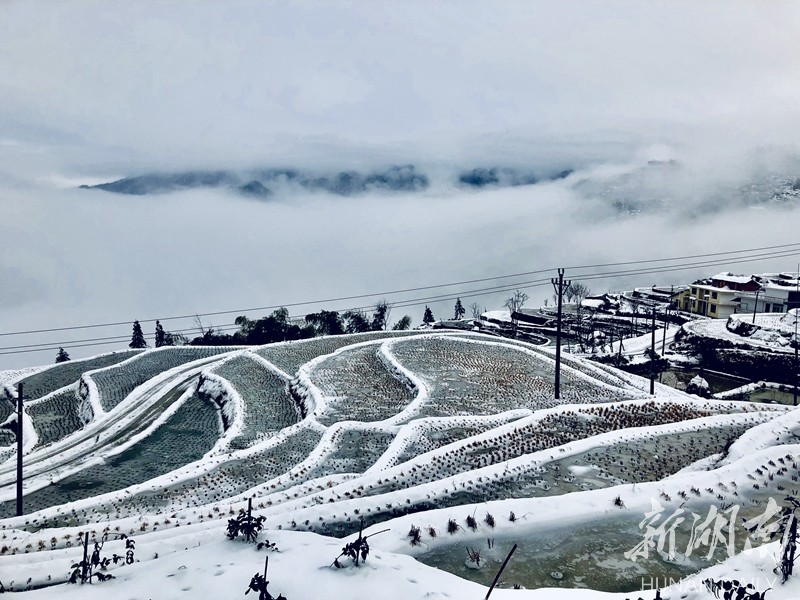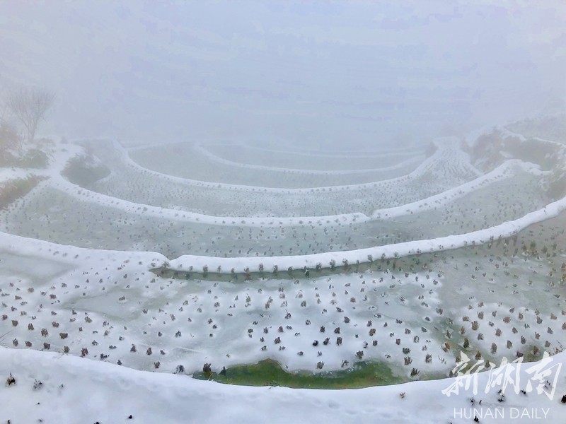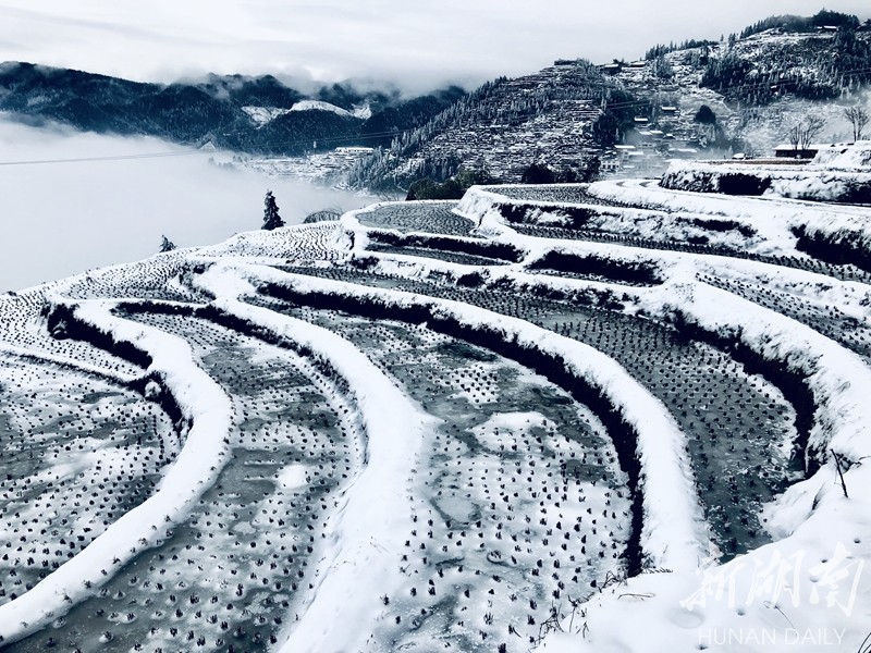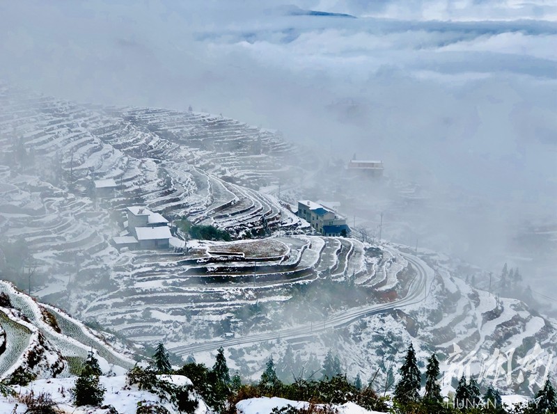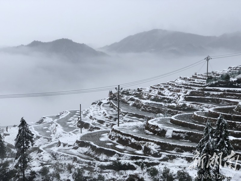 2019年的第一场大雪把湖南雪峰山里的溆浦山背梯田妆扮的银装素裹,分外妖娆。连日来,冰雪尚未消融。花瑶山背梯田上,有时云雾缭绕,梯田时隐时现,远看犹如一付精美的山水画卷,把人带入梦幻般的童话世界。屈洪文摄