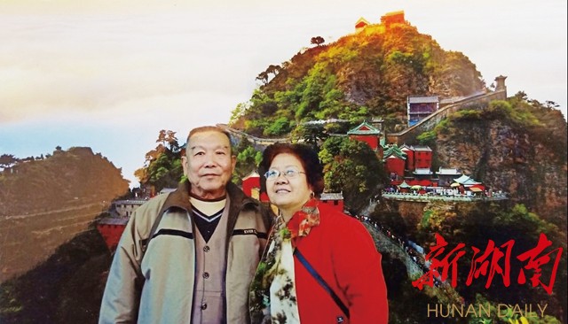 秦立人(左)和老伴2018年10月武当山合影留念。