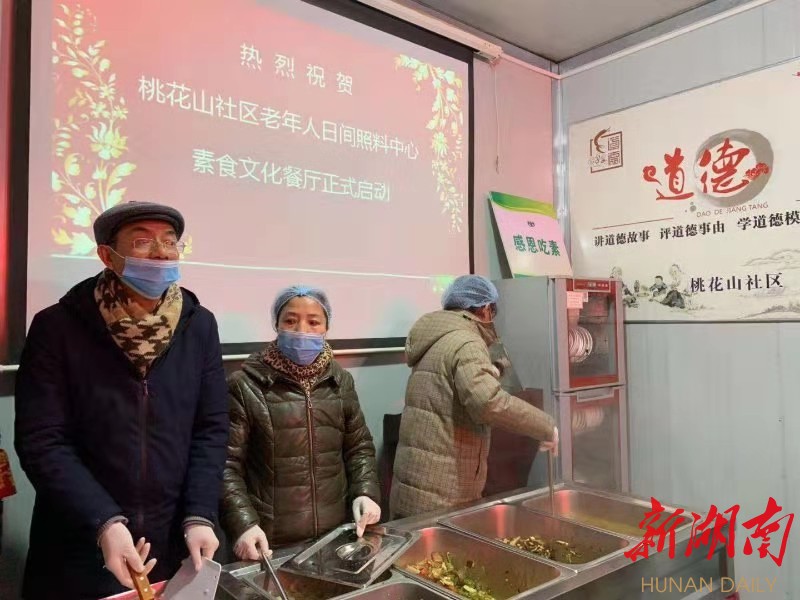 湖南日报·新湖南客户端2月23日讯(屈艳 刘波岚)今日11时许,岳阳市岳阳楼区三眼桥街道办事处桃花山社区的古稀老人郑淑芳和老伴任明生,在社区老年人日间照料中心吃了一顿免费的午餐。昨天,郑淑芳在“桃花山社区网格微信群”中得知,社区提供免费午餐的消息,她和老伴立马到社区服务中心报了名。吃到了免费餐的郑淑芳高兴得合不拢嘴,她竖起大拇指道:“我子女虽然在岳阳上班,但也不方便照顾我们两个老人,现在社区能免费吃饭,还提供休息和娱乐的地方,我们太幸福了。”