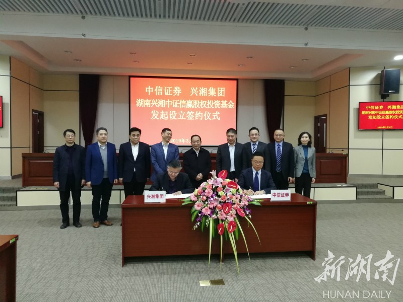 湖南日报·新湖南客户端3月2讯(记者 胡信松)昨日,湖南兴湘投资控股集团有限公司(简称“兴湘集团”)与中信证券股份有限公司(简称“中信证券”)在长沙联合发起设立湖南兴湘中证信赢股权投资基金。基金总规模10亿元,将主要投资于省内外优质A股上市公司及其产业相关的优质未上市公司股权。