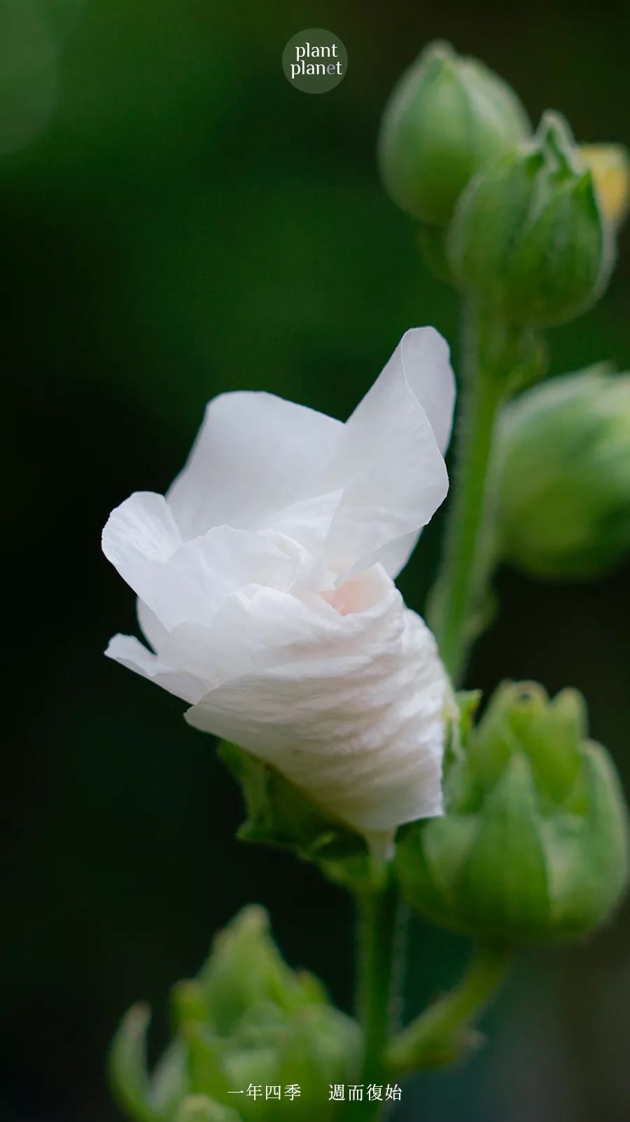 ▲ 这是一朵白色的蜀葵,还未盛开的花朵,像那种有点丝绸质感的面料,折起来的,轻轻压扁,可以塞在西装口袋里。