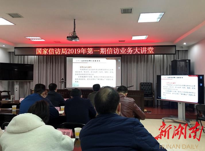 湖南日报·新湖南客户端3月28日讯(特约通讯员 周宇)3月26日下午,国家信访局依托视频信访信息系统组织开展2019年第一期信访业务大讲堂培训,就《着力提升来访接待规范化专业化精准化水平及时就地解决信访问题》进行专题辅导,区信访局全体工作人员参加。