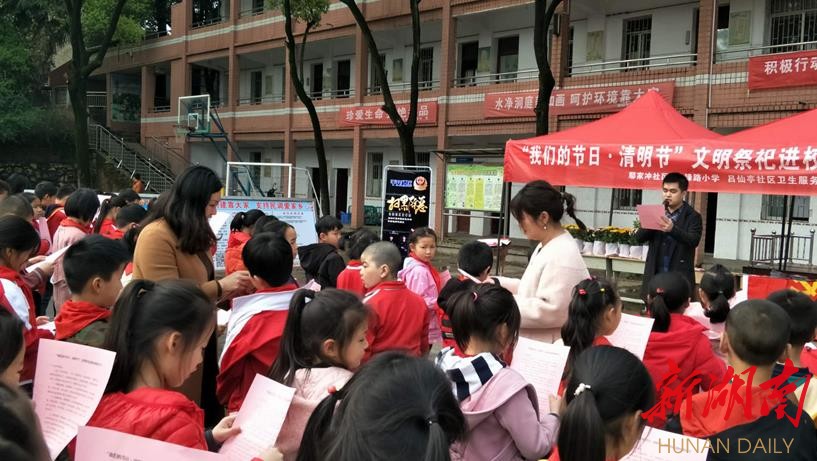 湖南日报·新湖南客户端4月8日讯(特约通讯员 丁勇)4月2日,鄢家冲社区联合区国土分局和吕仙亭卫生服务中心走进先锋路小学,开展“我们的节日—清明”文明祭祀进校园活动。