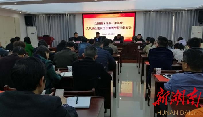 湖南日报·新湖南客户端4月1日讯(特约通讯员 谢朝蓬)3月27日下午,岳阳楼区卫计系统召开2019年党风廉政建设工作部署暨警示教育会。局机关和区计生协会股(室)负责人以上干部,区属各卫生计生单位的行政领导班子成员、专职支部书记共108人参加。