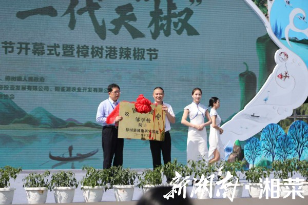 岳阳市人民政府副市长邱虹宣布湘阴第四届乡村旅游节开幕式暨樟树港辣椒节开幕。省文化和旅游厅副厅长高扬先等领导出席。中国工程院院士邹学校为阳雀湖农业开发有限公司授“樟树港辣椒研究基地”牌。