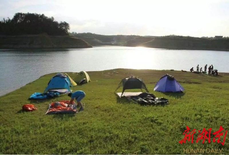 春夏之交,紫霞湖畔绿草如茵,微风拂过,湖面波光粼粼。此时正是在户外游玩的好时节,应带上亲朋好友,来到湖边,安营扎寨,同自然亲密接触。