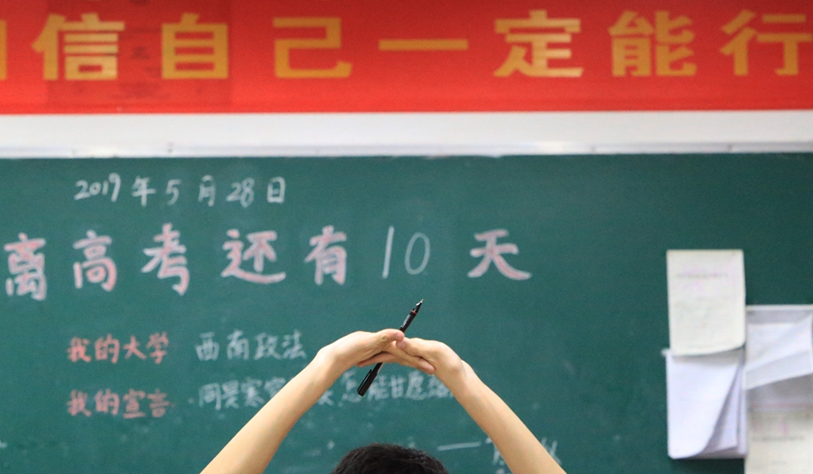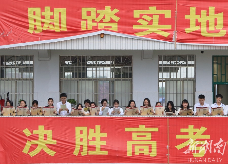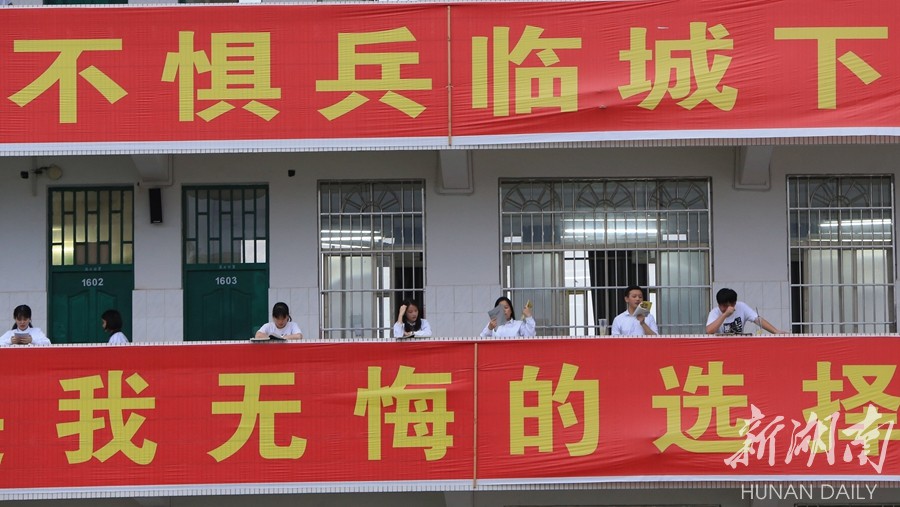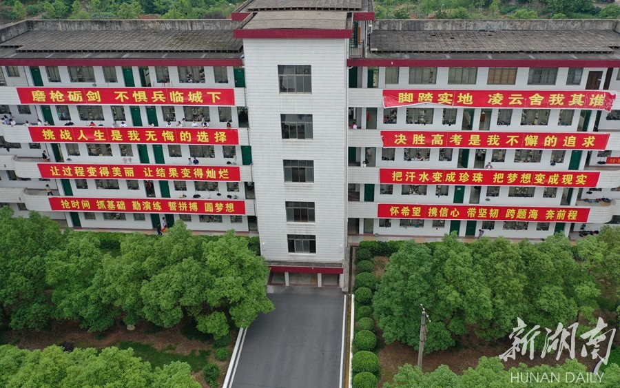5月28日,衡阳县第一中学的高三毕业生楼挂满了励志的标语。