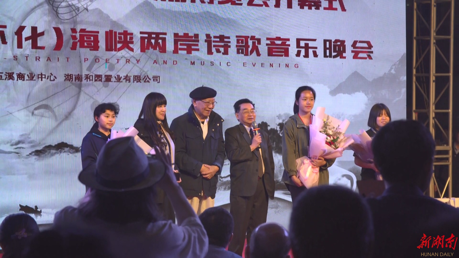 湖南日报·新湖南客户端5月10日讯(傅泽华 刘银师)5月8日晚,以“爱.乡愁”为主题的中国(怀化)海峡两岸诗歌音乐晚会在锦绣五溪商业中心举办,拉开“原味台湾”怀化两岸经贸文化交流博览会帷幕,同时标志着首次中华海峡两岸诗人楚辞之旅启程。全国政协委员、中华全国台湾同胞联谊会副会长杨毅周,中国台湾著名诗人郑愁予,屈原后裔、中国诗歌春晚总导演屈金星,澳门台商协会会长简廷在等嘉宾和湖南省委统战部巡视员冯波,怀化市委统战部常务副部长戴永福及区领导熊安台、冯贵友、肖明参加晚会。