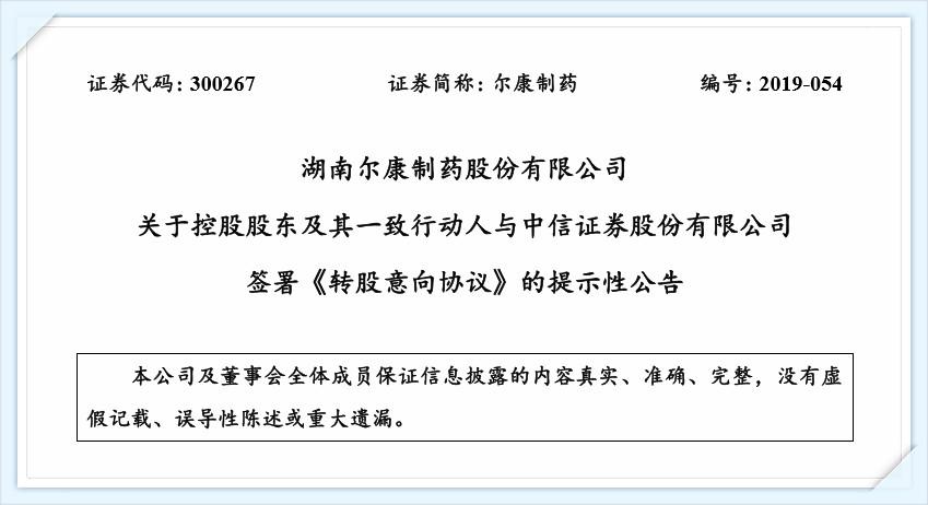 通过这项以股抵债的计划,尔康制药得以有效化解控股股东的债务风险。同时,中信证券也将籍此成为尔康制药的重要机构股东。