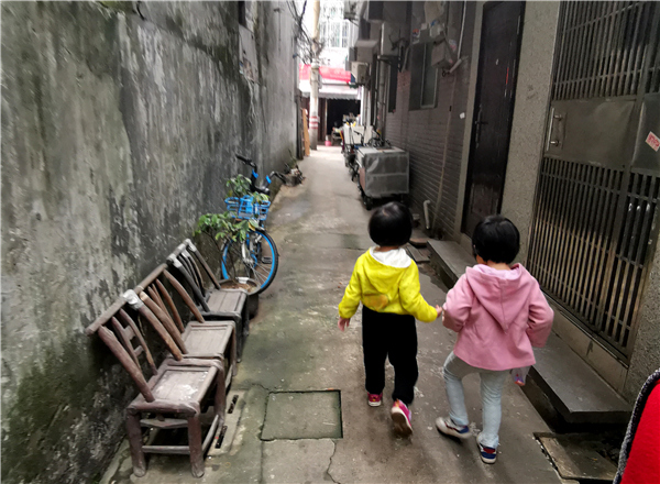 沿着这条街巷往西文庙坪方向,带"里"的巷子排开,呈现出不规则的鱼骨状。它们大多都是窄巷子、死胡同,巷子最宽处也只能容两人并肩而过。从人民西路进来,依次是熊家祠巷、新民里。熊家祠巷又窄又潮湿,住了40年的陈先生说,这条巷子大概住了十来户人家,现在基本租出去了。隔壁的新民里比熊家祠巷稍微宽一点,但也是一条死胡同,两条巷子的情况类似,但相比熊家祠巷的冷清,这条巷子里更有人情味。有一户人家正在做凉面当晚餐,这时,两个相熟的邻里串门,女主人热情地端出凉面一起分享。