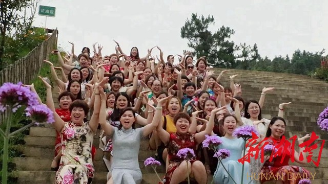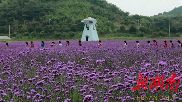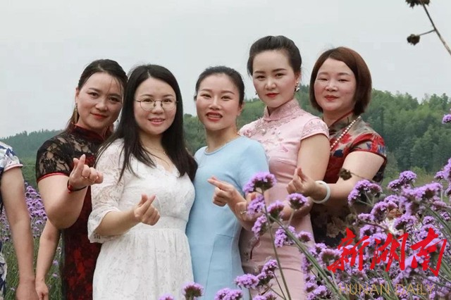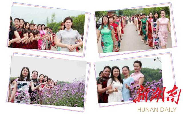 眼下正是山塘村200多亩连片的紫色马鞭草盛开的时候,花海变T台,活动现场,佳丽们身着五颜六色的旗袍,婀娜多姿走秀,或花中漫步、或花海留影、休闲,流连忘返。优雅的身姿、艳丽的旗袍与湘南民居、风车、花海等构成一幅幅美丽画卷,展现出山塘村的生态之美和旗袍的独特魅力,吸引了众多游客和村民、摄影师驻足观看拍照。