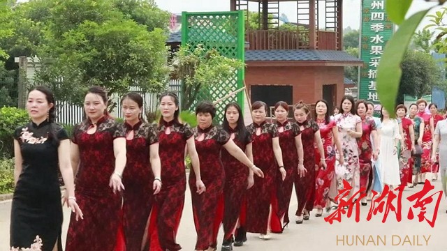 “一身旗袍,诉说盛世风雅。”6月12日,60余名身着各式旗袍的美女走进永乐江镇 “全国美丽休闲乡村”——山塘村,从廊桥中、村道上,花海里、水果采摘园款款走来,尽显新时代农村女性的风采。