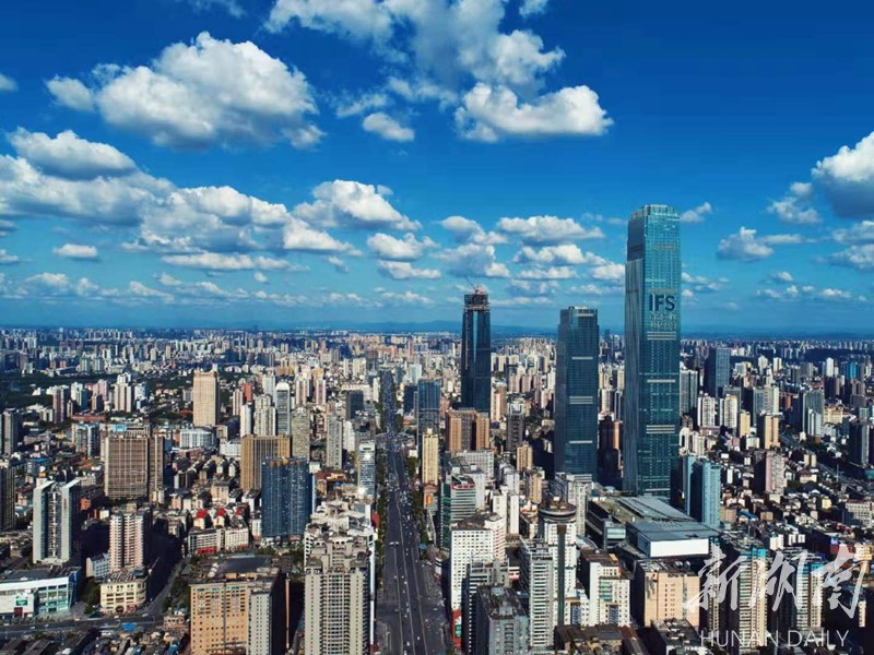蓝天下的长沙。刘光南 摄 Special Changsha below today\"s special sky. (Photo by Liu Guangnan)