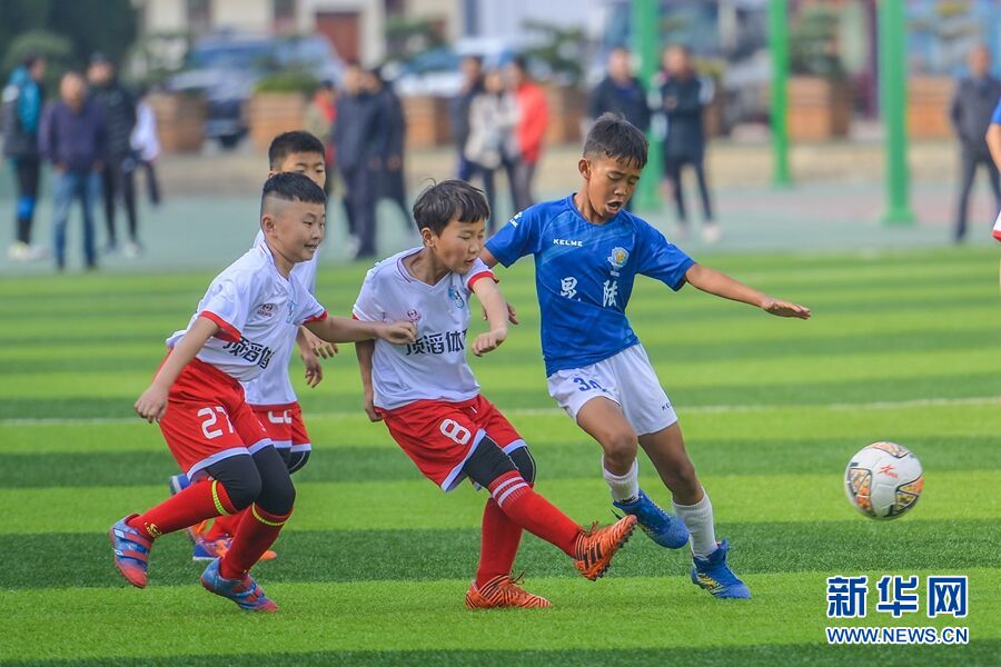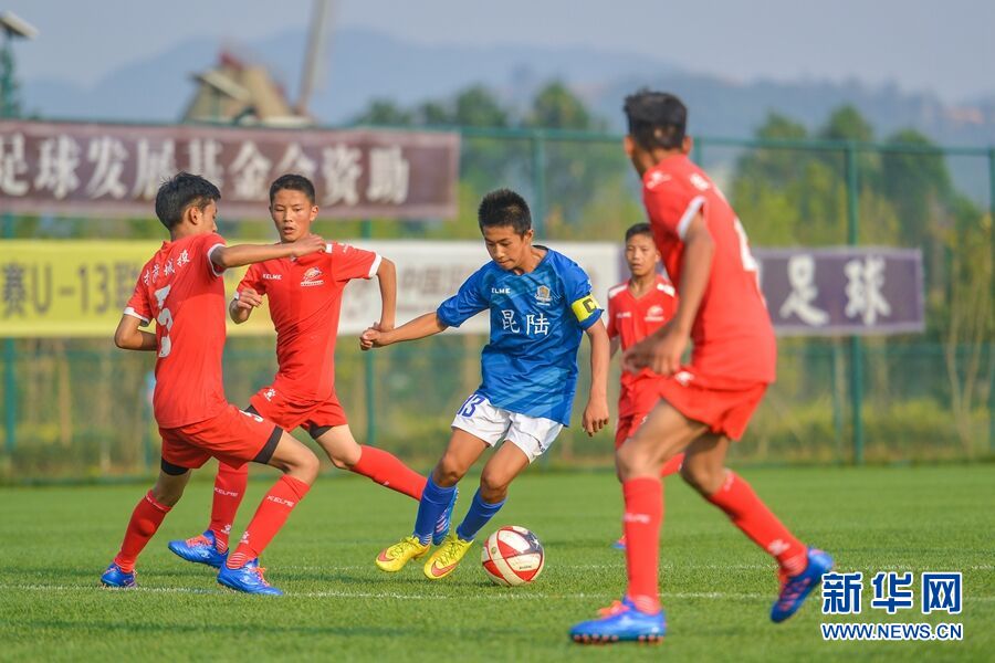 赛场上奋力拼抢的云南昆陆小球员。新华网发(张成 摄)