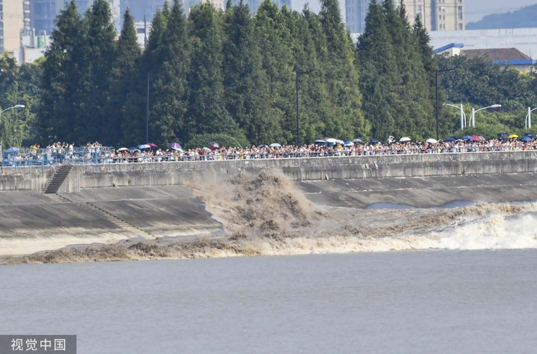 2019年9月16日,杭州,钱塘江大潮如约而至。