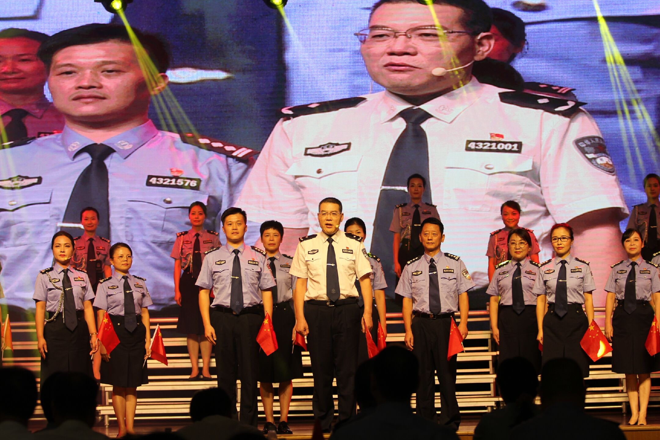 “我和我的祖国 一刻也不能分割无论我走到哪里都流出一首赞歌......”“突如其来”的快闪“点燃”了文艺汇演现场。(通讯员 梁辰)