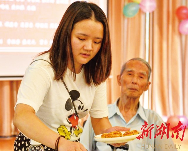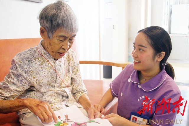 清水塘街道同欣善孝堂医养结合中心24岁的护理员廖舒敏,今年7月毕业于湖南医药学院。虽然上班才两个月,但是她工作细心,可以熟练地给老人们剪头发、修指甲、按摩身体等,老人们对她交口称赞。