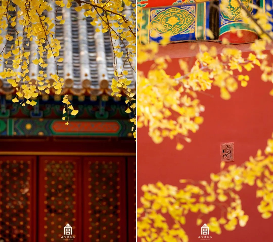北京的秋天要去一趟故宫,秋天的故宫最美的自然是银杏,与别处的银杏不同,它映着着明晃晃的瓦,照着红墙,黄的如同灿烂的金子,红的好像喷薄的熔岩,人少的黄昏,静静走在宫墙里,时空不曾穿越,仿佛已经历经千年。