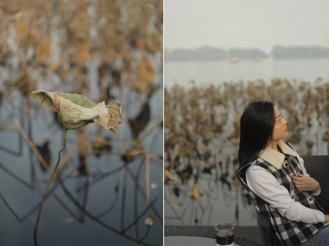 乘着小舟在西湖上飘着,岸上人再多,心也是静的,阳光懒懒的晒着,湖边的黄叶柔柔的摇着,湖上的残荷,像是蒙上旧时光的滤镜,此景,最适合回忆往事。
