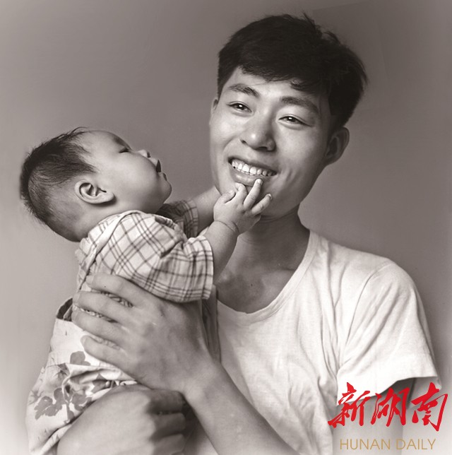唐湘岳出生后,唐大柏抱着他拍下了这张值得纪念的照片。