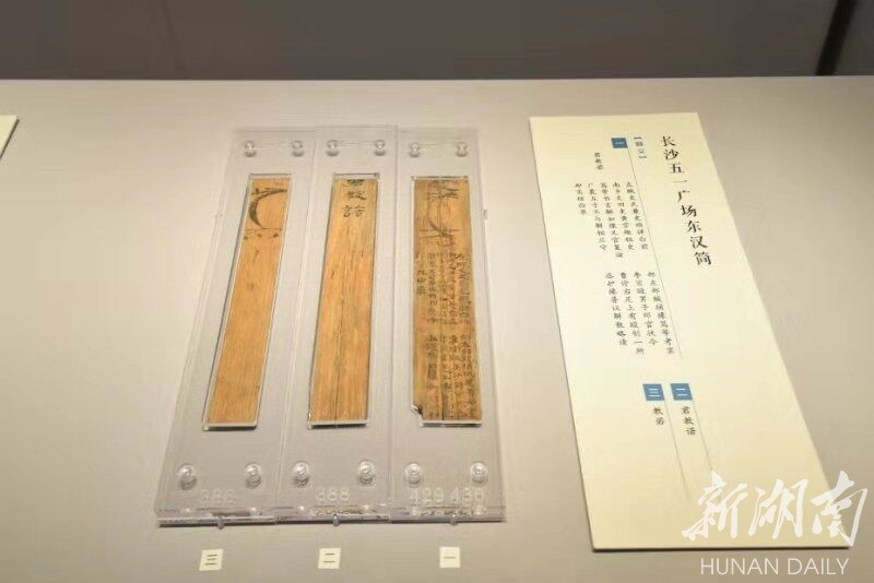 “在东汉造纸术得到改进使得纸张普及之前,简帛是我国古代最重要的书写材料之一,它所承载的文字不仅反映了当时时代的方方面面,还展现了我国书法艺术的发展变化。”卢莉说,本次展览聚集了甘肃简牍博物馆、湖北省博物馆、荆州博物馆、湖南省文物考古研究所、湖南大学岳麓书院、长沙市文物考古研究所、长沙简牍博物馆及湖南省博物馆8家文博单位的380件珍贵展品。湖南是简帛出土大省,在时代上没有缺环,展品占了此次展览的半壁江山。