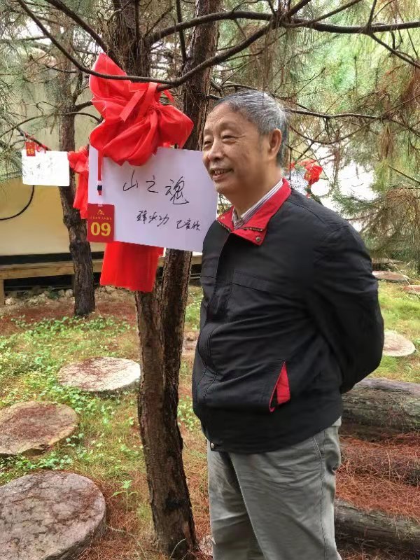 穿岩山森林公园是本次活动的主场地,每位作家认领一棵马尾松,并在树的吊牌上写上一句话。少功先生写的是“山之魂”,其他作家分别在各自认领的树上写上“青山在,你也在”“和树同在”“灵魂栖于此”等等见心见性之语。我没有认领,但当时面对巍巍山峰苍苍山树,心中默想了一句话:“山不老,树常青,文长存。”