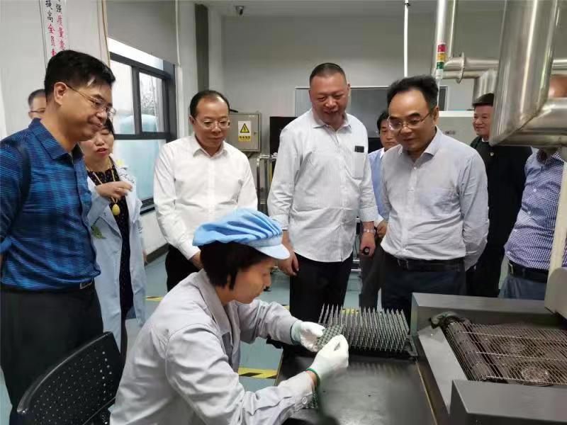 湖南健缘医疗科技有限公司是一家中医诊疗及康复设备研发、生产和销售的国家高新技术企业,自主研发的专利产品目前在全国近30个省市上千家医院临床使用,2018年完成产值2亿元。当天下午,李赤群一行来到该公司,先后实地参观了企业生产车间、产品展示区、企业孵化区,详细了解企业的发展历程、智能制造规划,询问了解产品的生产工艺流程,产品研发、科研成果落地转化等方面的情况。