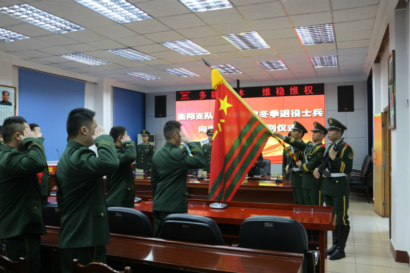 三湘都市报·新湖南客户端12月1日讯(通讯员 杨航 曹杰)今天上午,武警衡阳支队举行 2019年度冬季退役士兵向武警部队旗告别仪式。29名退伍老兵向武警部队旗庄严敬礼,踏上漫漫返乡路。