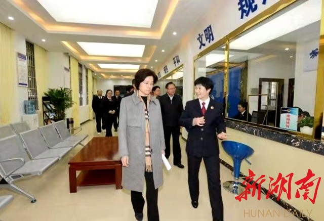 叶晓颖一行实地察看了12309检察服务中心,参观了“七彩花开”未检工作室等功能室,了解了创建省级文明标兵单位的情况,并听取了新邵县检察院对3个典型案件的汇报。